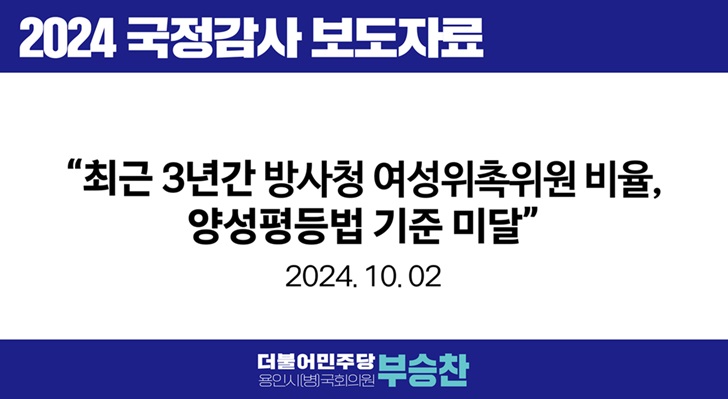 [국회의원 부승찬] 방사청, 위촉직 여성비율 법정기준 미달 심각...방추위는 3년간 ‘0명’