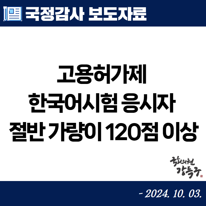 [국회의원 강득구] 고용허가제 한국어시험 응시자 절반 가량이 120점 이상