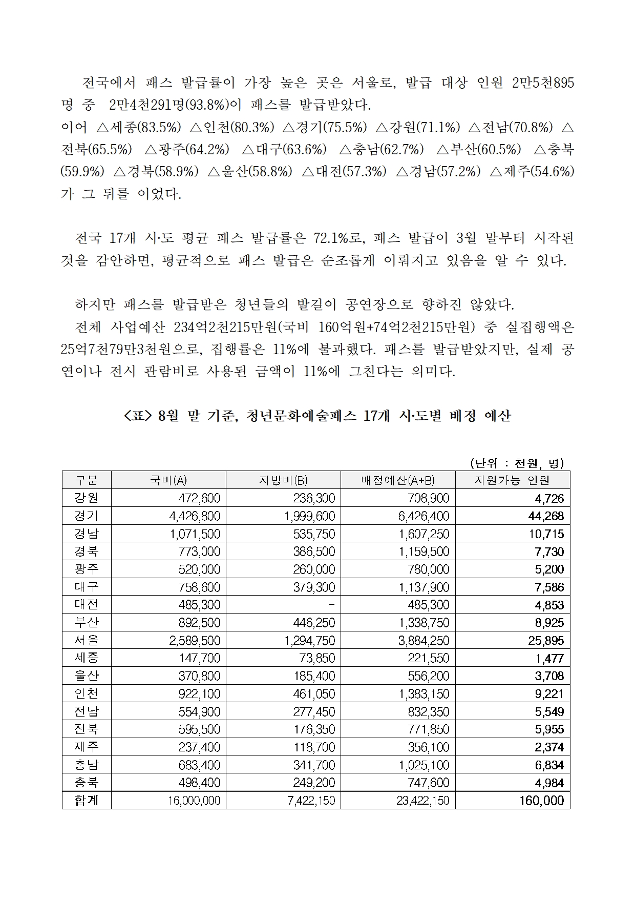 (최종)이기헌의원실_국감보도자료청년문화예술패스 발급률 72%인데 공연장 간 청년들은 없어.hwp