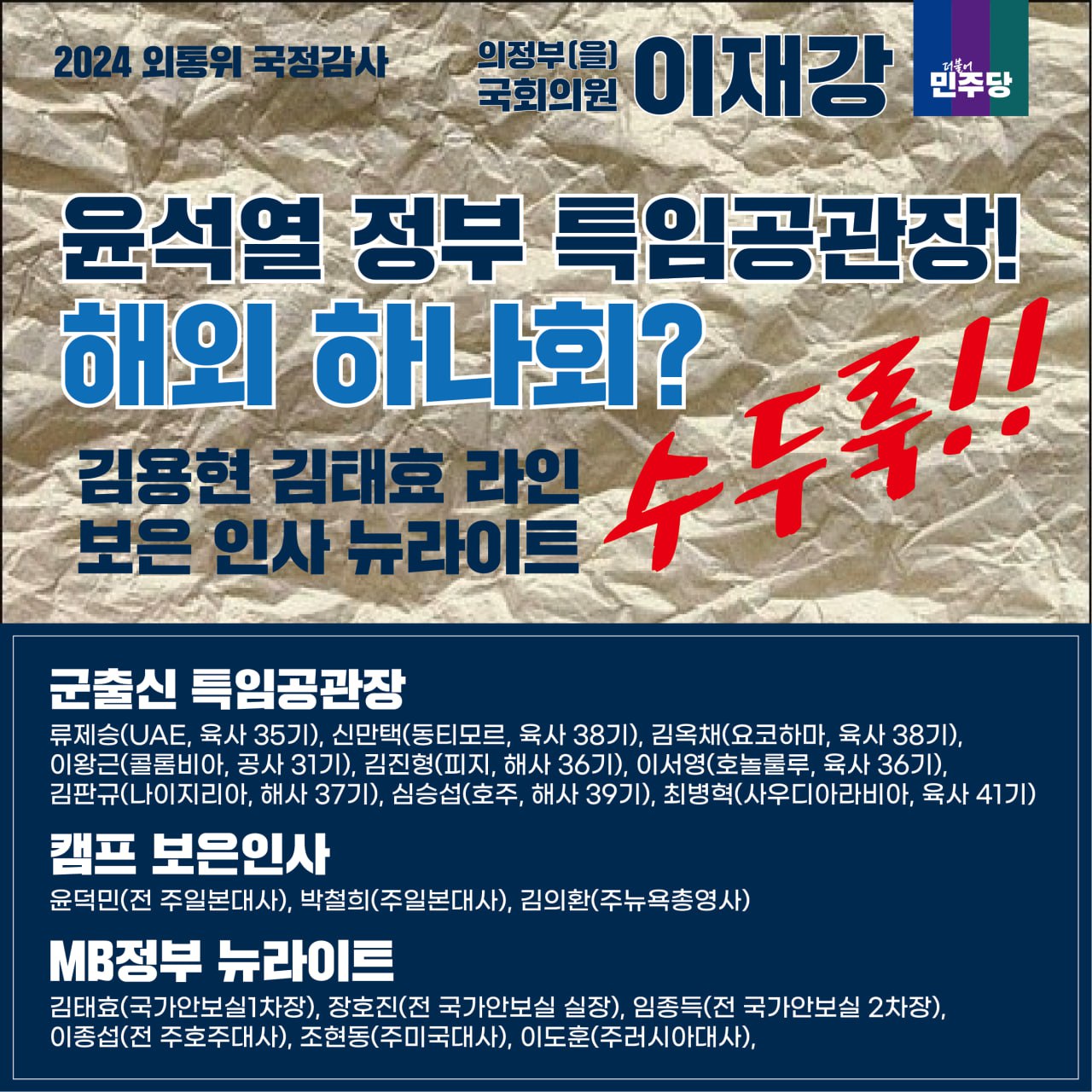 [국회의원 이재강 국정감사 카드뉴스] 윤석열 정부 특임공관장! 해외 하나회?
