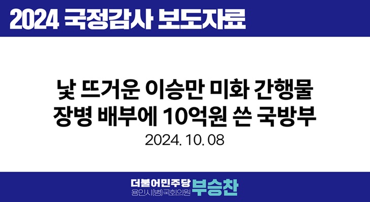 [국회의원 부승찬] 낯 뜨거운 이승만 미화 간행물 장병 배부에 10억원 쓴 국방부