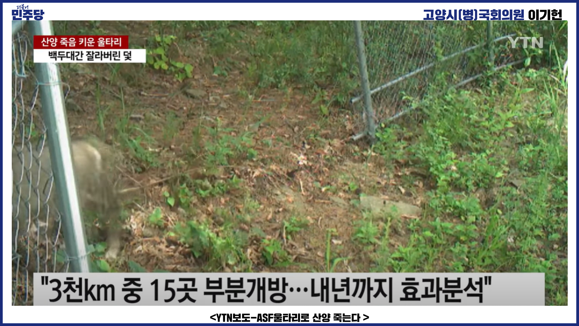 [이기헌 의원(고양시 병) 언론보도]<YTN>죽음 키운 울타리...백두대간 잘라버린 3천km 덫