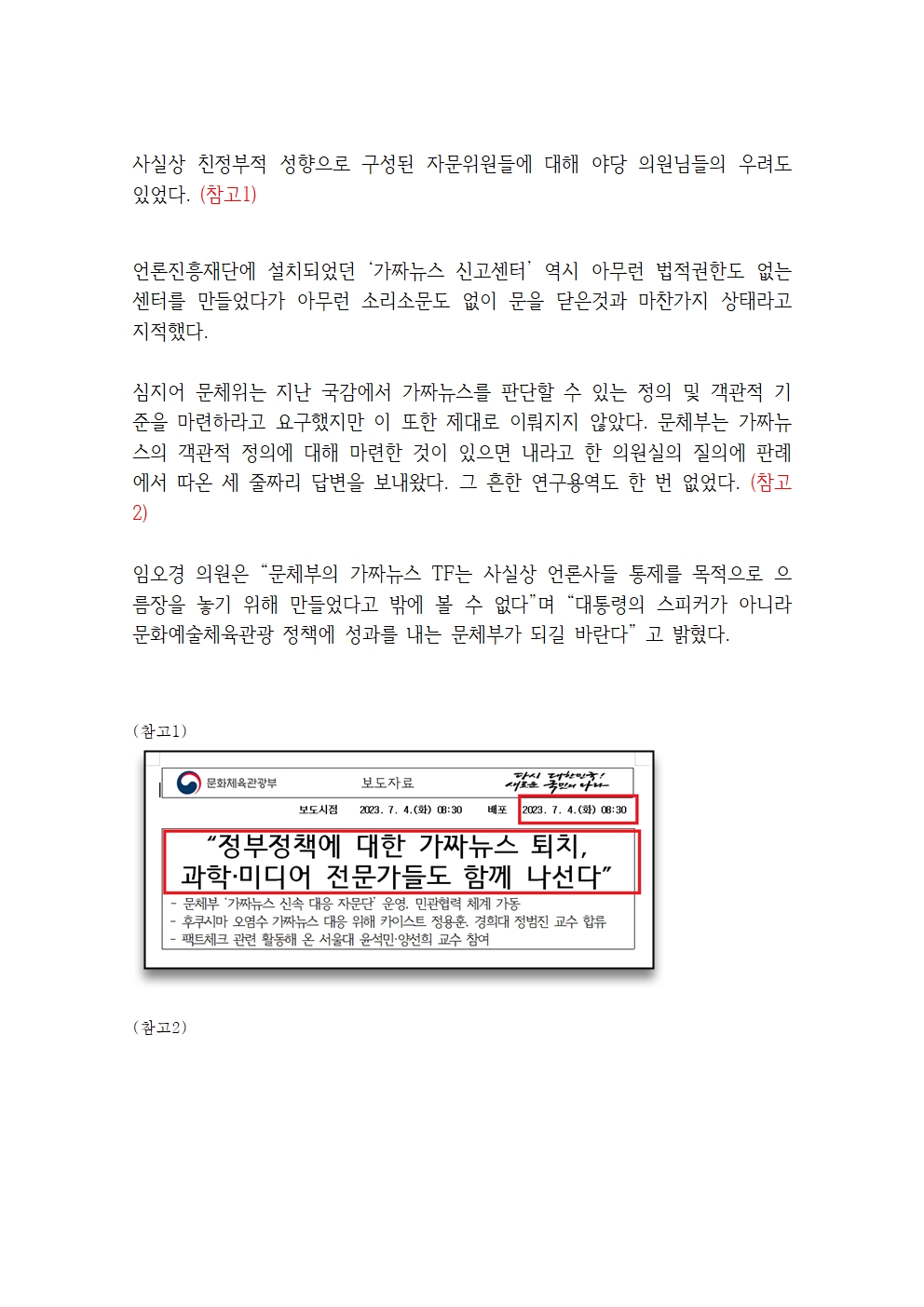 [국회의원 임오경 국감보도자료]가짜뉴스 척결하겠다던 문체부의 가짜뉴스신속자문단, 1년간 회의 단 1차례