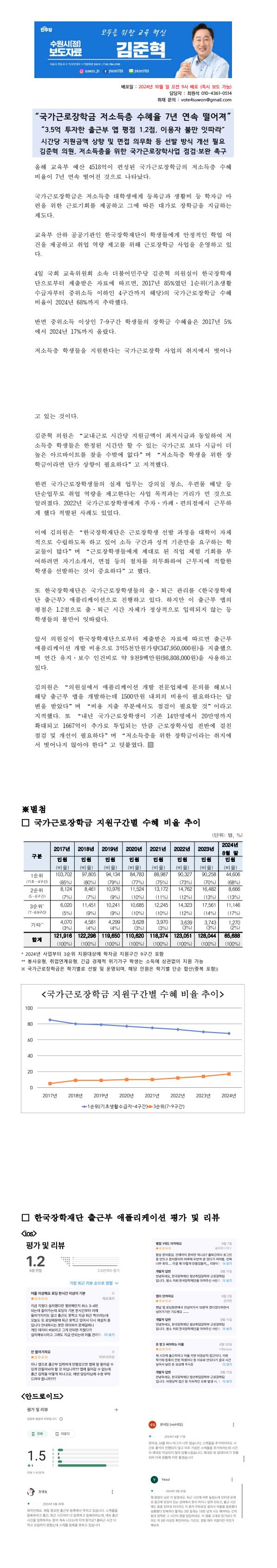 [국회의원 김준혁 국정감사 보도자료] 국가근로장학금_저소득층 수혜율 7년 연속 떨어져