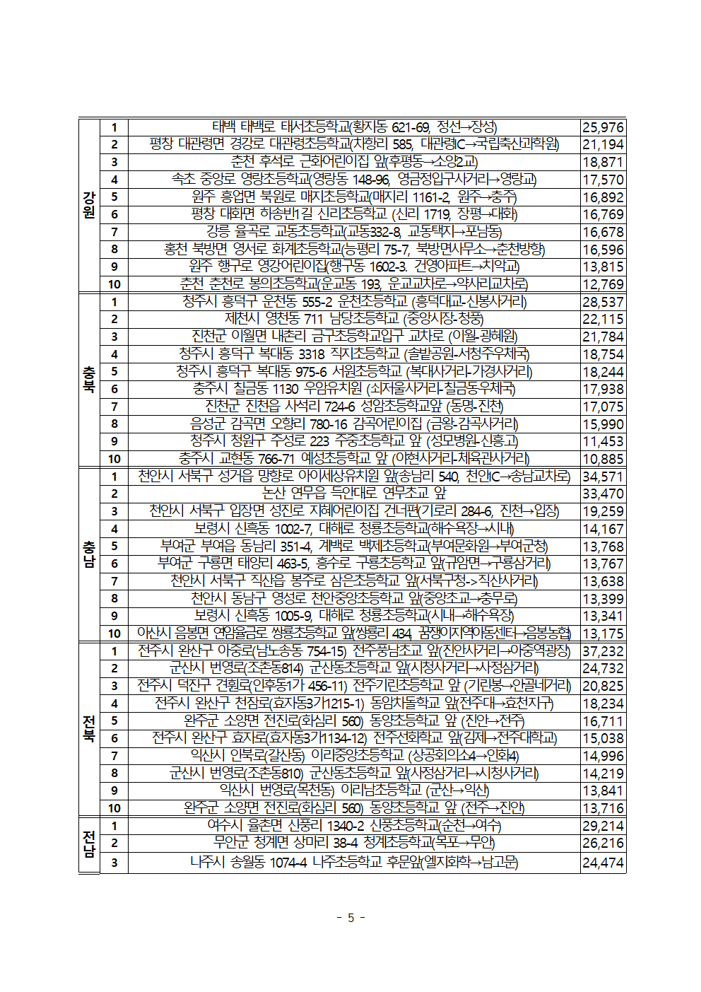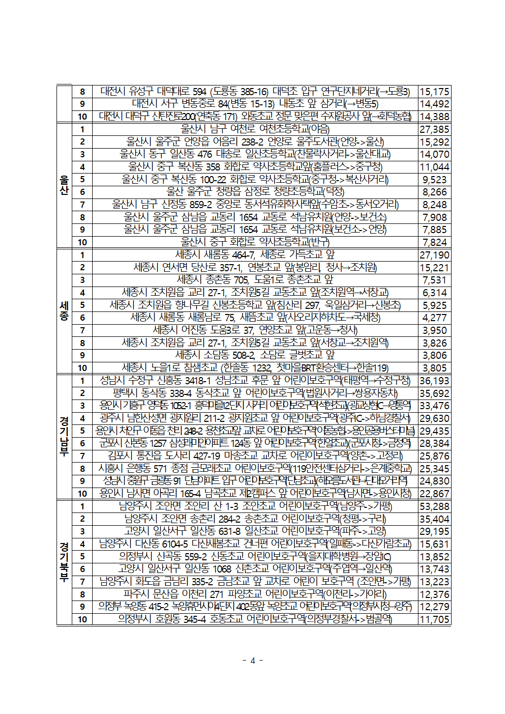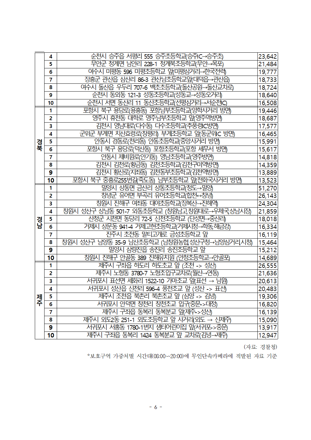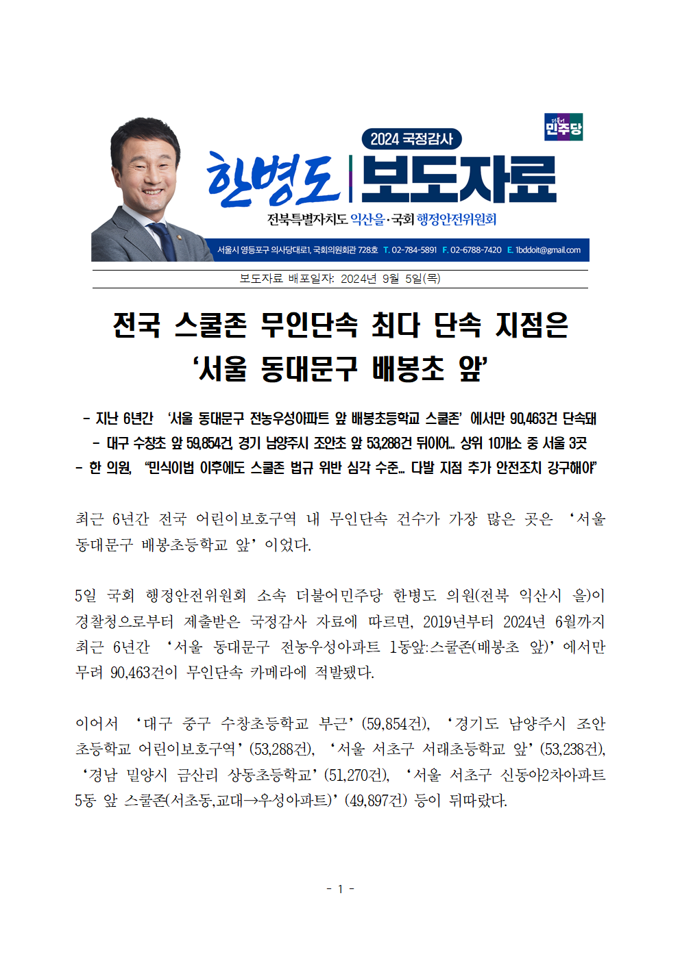 [한병도의원]2024행안위국정감사보도자료(4)_전국 스쿨존 무인단속 최다 단속 지점은 ‘서울 동대문구 배봉초 앞’.hwp