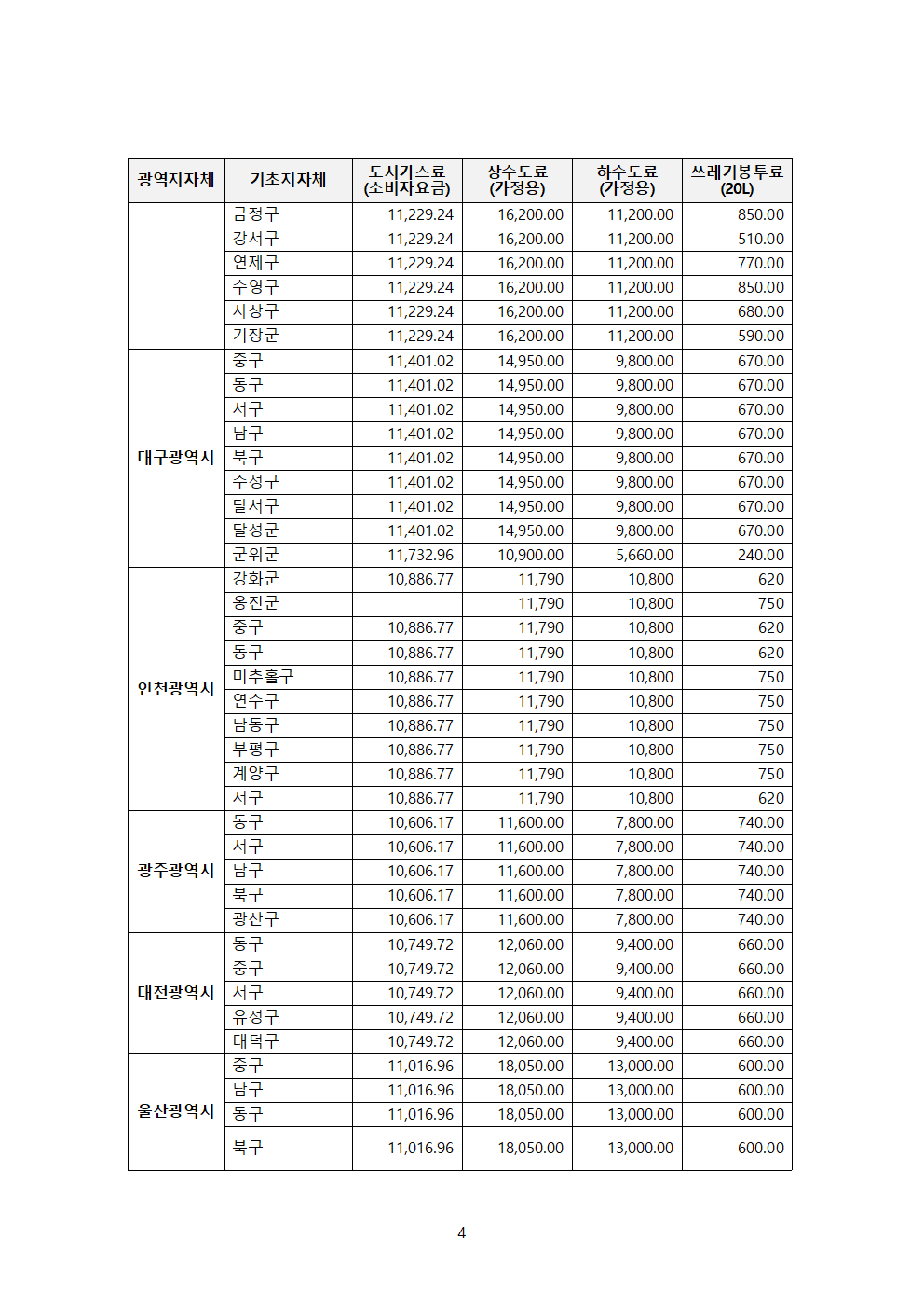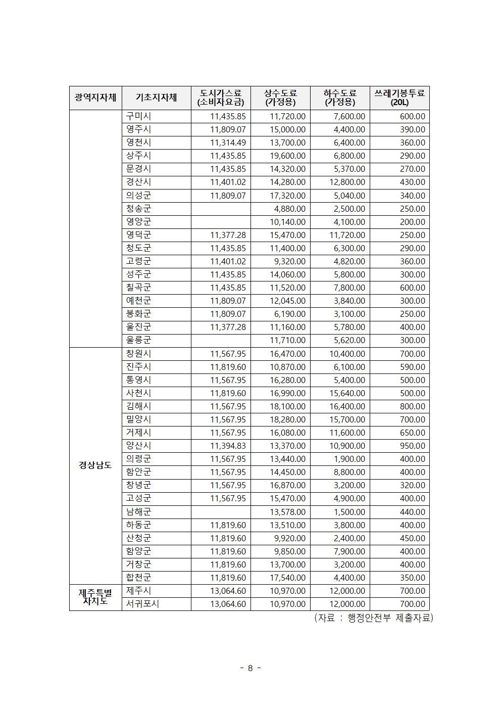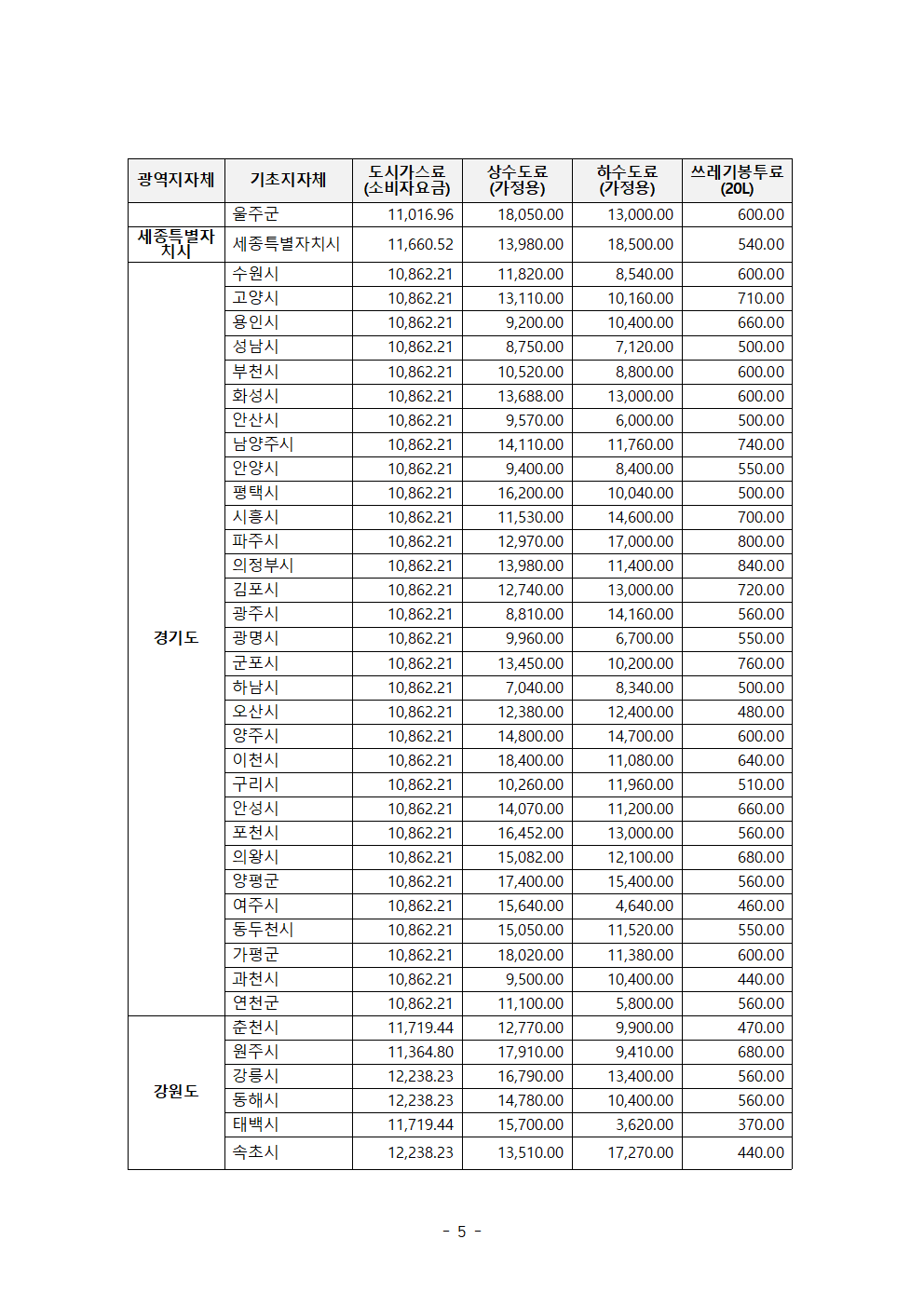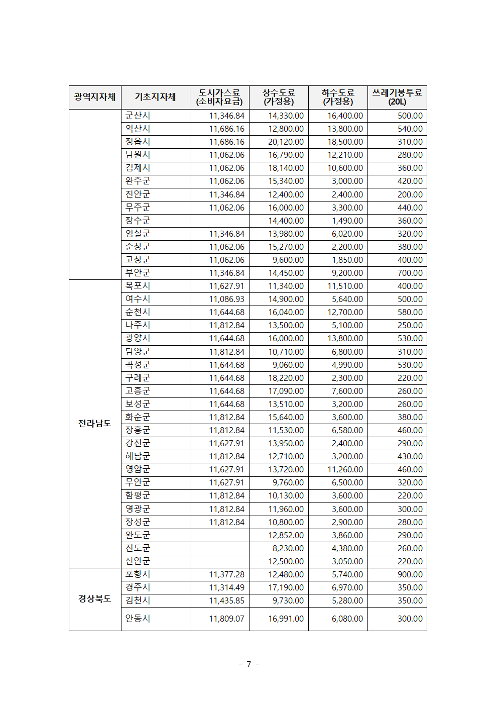 한병도의원_2024행안위국정감사보도자료(17)_전국 쓰레기봉투값 천차만별 지역별 공공요금 최대 10배 이상 차이.hwp