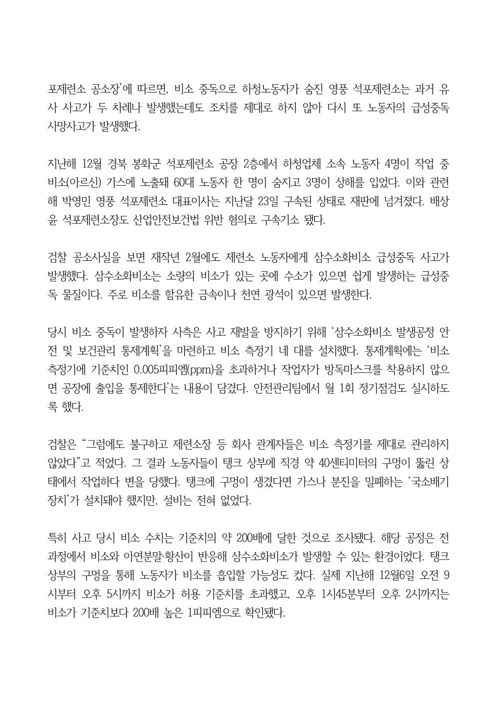 공소장엔 박 대표는 중대재해 처벌 등에 관한 법률(중대재해처벌법) 등 세 개 법률을 위반한 것으로 적혔다.