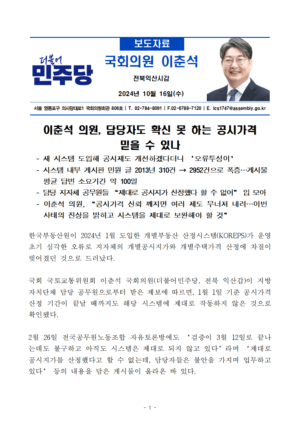 [국감_보도자료18]_241016_이춘석_의원__담당자도_확신_못_하는_공시가격_믿을_수_있나.hwp
