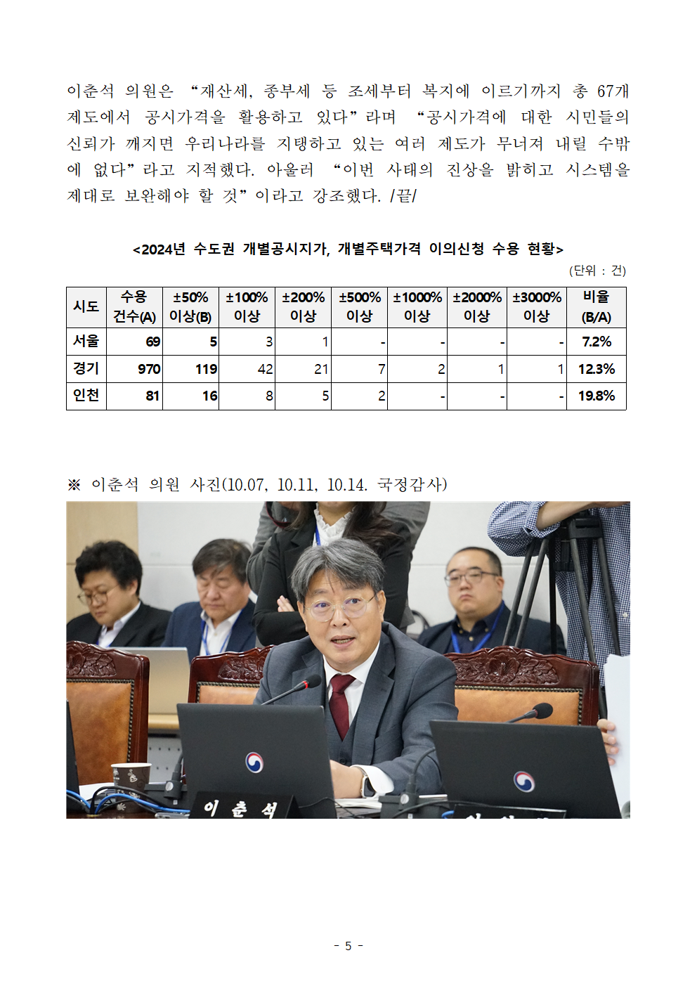 [이춘석 의원 국정감사 보도자료] 이춘석 의원, 담당자도 확신 못 하는 공시가격 믿을 수 있나