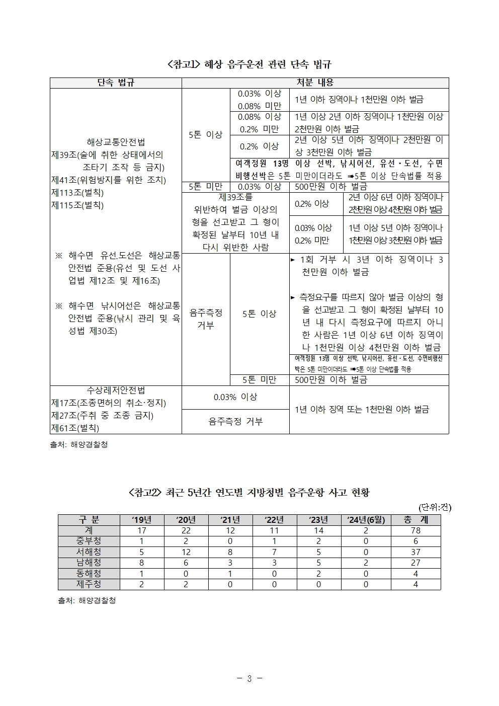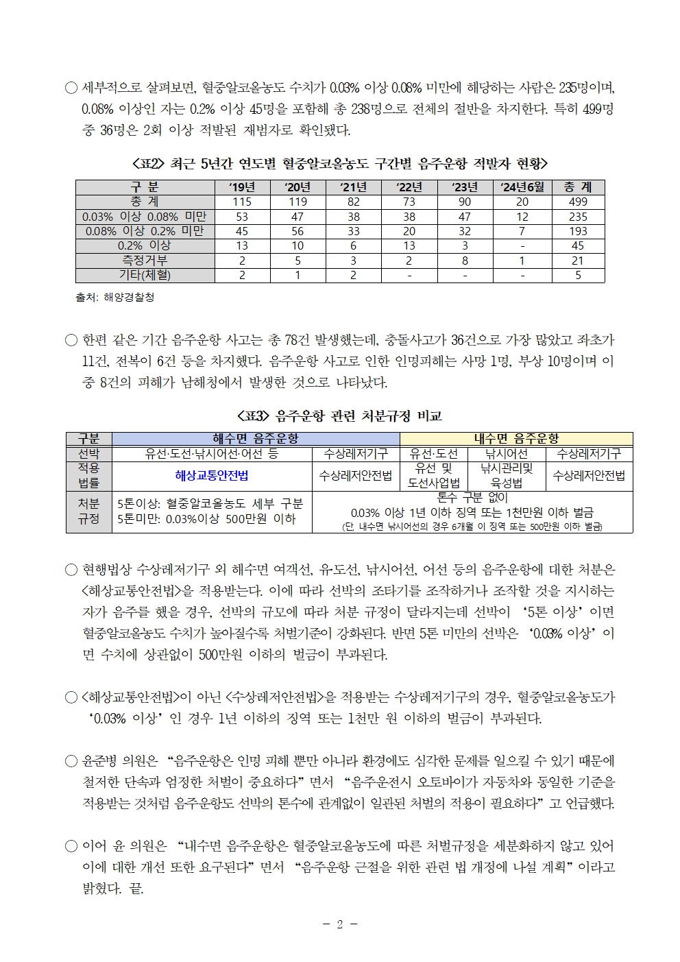 241021 [윤준병 의원 국정감사 보도자료] 해상음주운항 2건 중 1건은 음준운전의 면허취소 수준인 혈중 알코올 농도 0.08%이상 (1).hwp