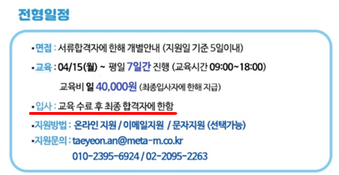 ▲ [그림1] 메타엠 마켓컬리 상담사 채용공고 中 발췌