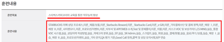 ▲ [그림3] 유베이스 스타벅스 상담사 사업주지원훈련 中 발췌