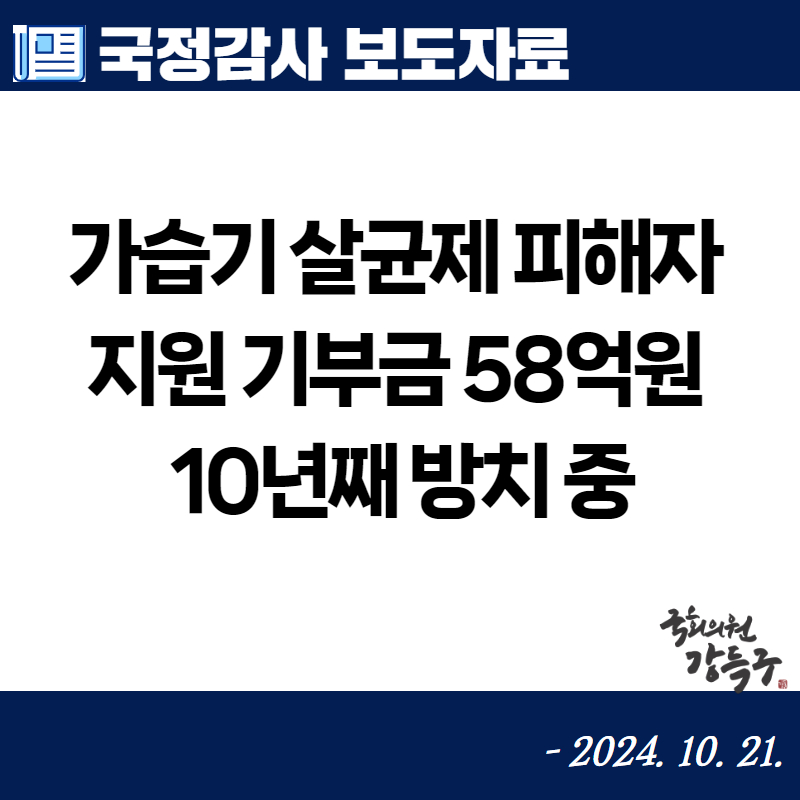 [국회의원 강득구] 가습기 살균제 피해자 지원 기부금 58억원, 10년째 방치 중