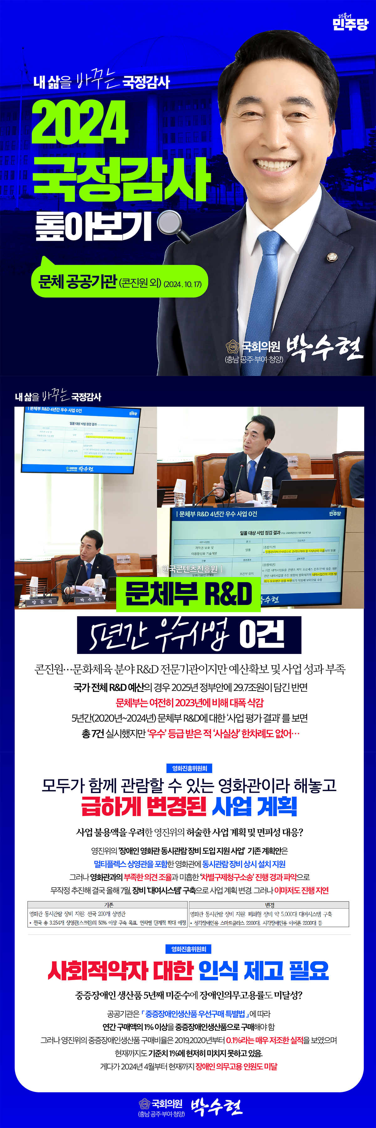[박수현국회의원카드뉴스] 2024 국정감사 톺아보기 | 문화체육관광부 공공기관 및 유관기관 (콘진원 외)