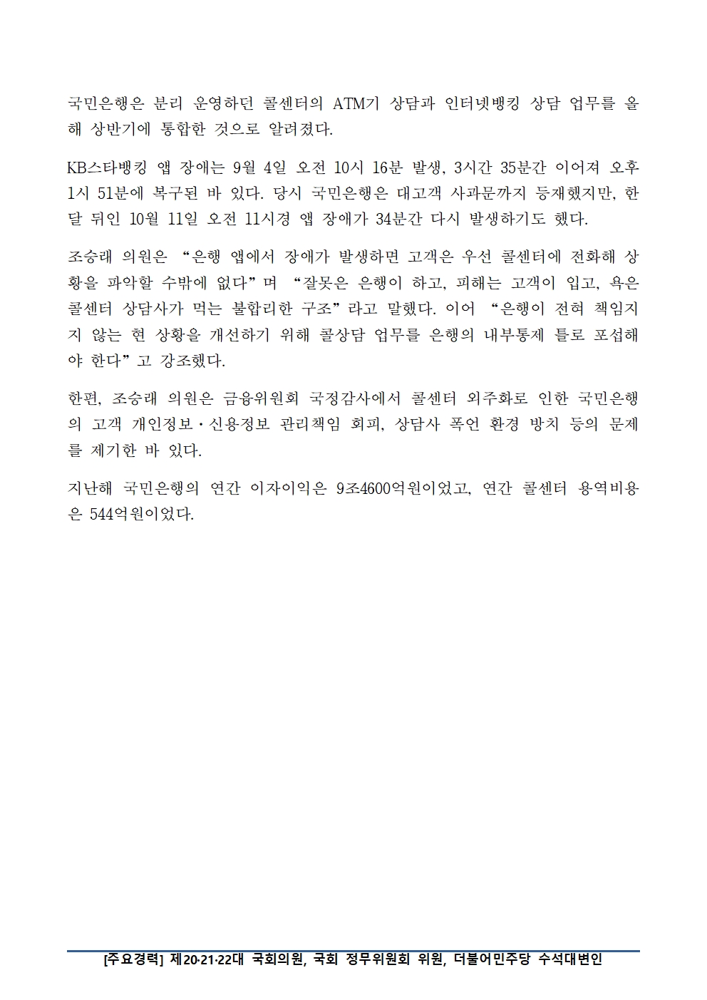 [국회의원 조승래] KB스타뱅킹 앱 장애로 ATM 콜상담도 마비...국민은행 책임 강화해야