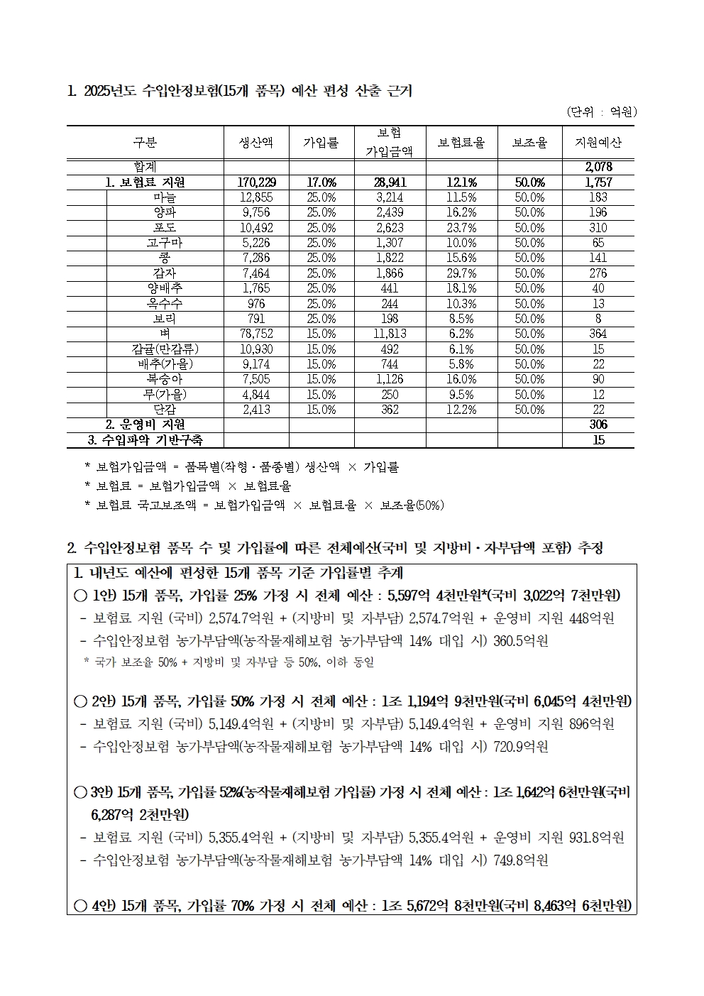 [윤준병 의원 국정감사 보도자료] 수입안정보험 2,5조원·농가부담 1,600억 추정!