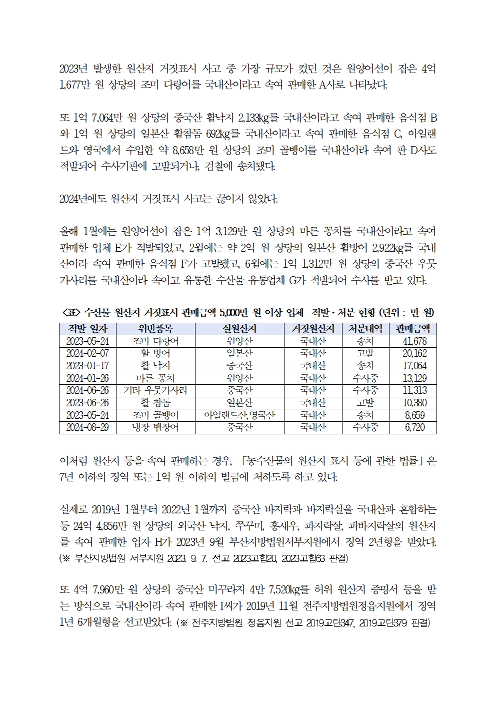 [문대림 의원 보도자료 - 1.해양수산부] 원산지 속인 수산물 약 10억 원어치 유통 수산물이력제 관리 물량은 고작 8.91%.hwp
