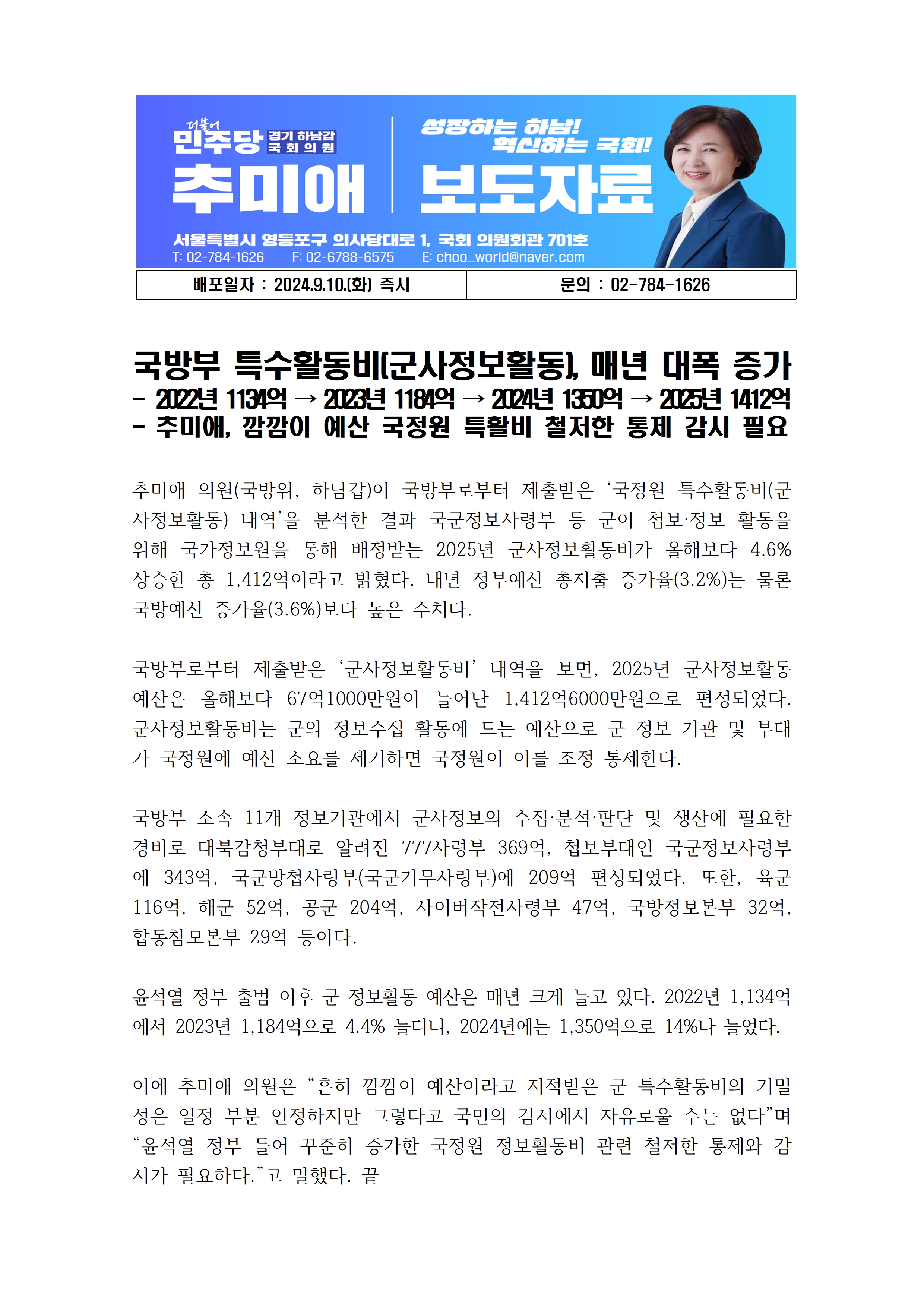 추미애_보도자료_국방부_특수활동비_대폭_증가_0910.hwp