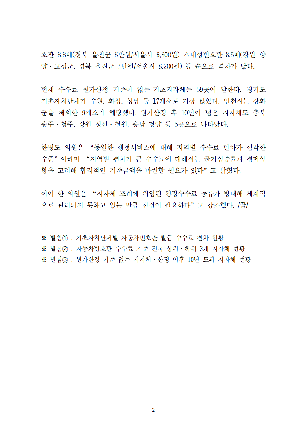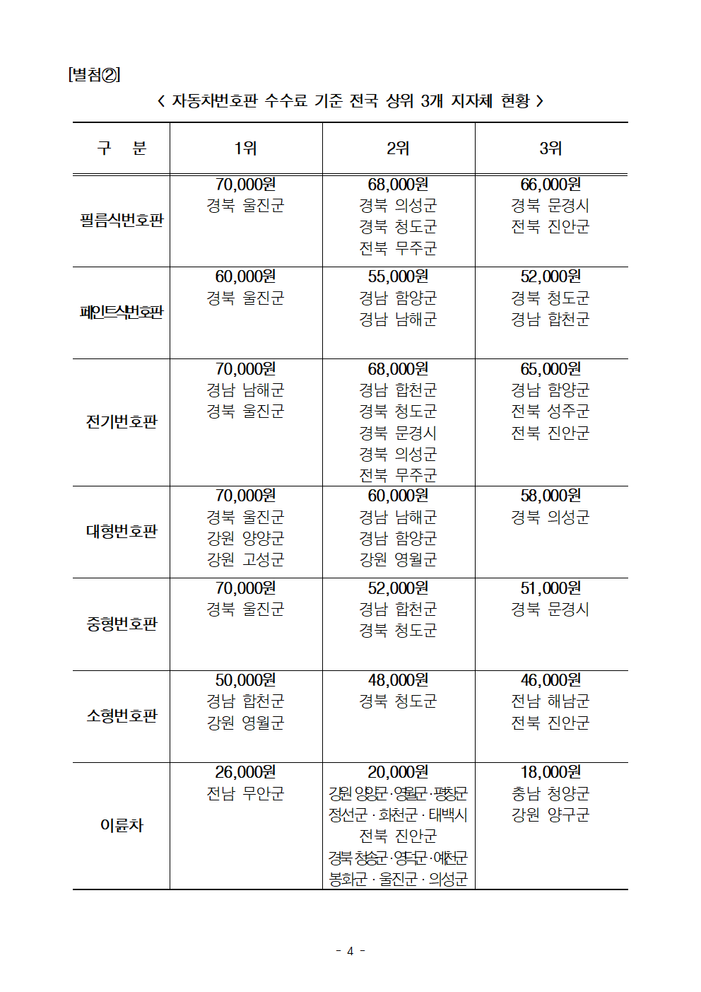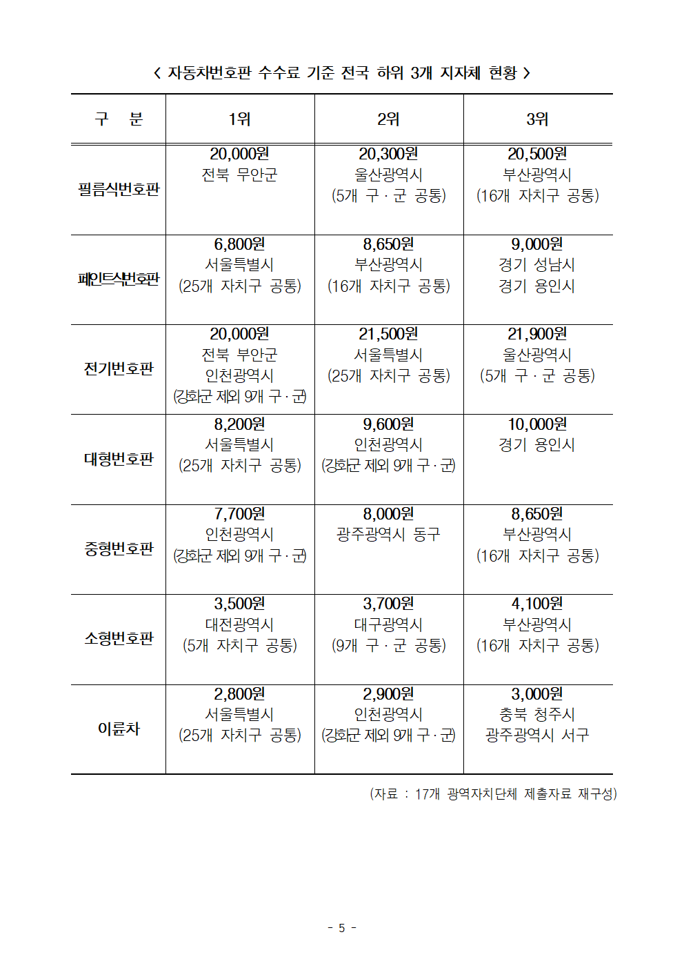 [한병도의원]2024행안위국정감사보도자료(44)영월은 5만원 대전은 3500원… 자동차번호판 수수료 지역별 편차 14배 달해.hwp