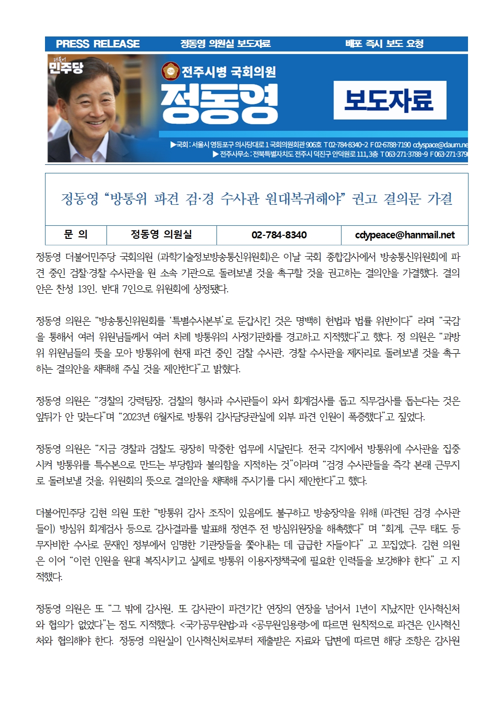 241024_종감01정동영_보도자료_방통위파견검경수사관원대복귀_권고결의안가결 (2).hwp