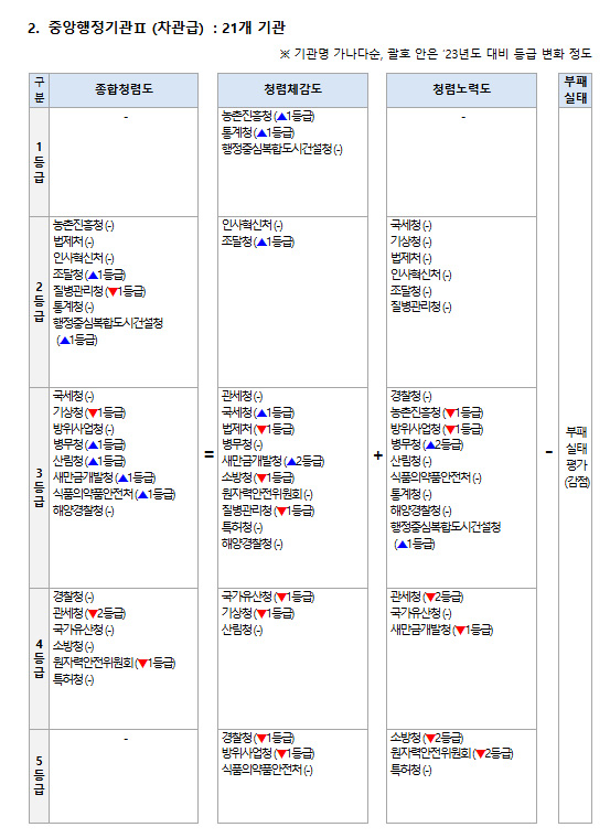 기관 유형별 종합청렴도 등급표. 자료 국민권익위원회