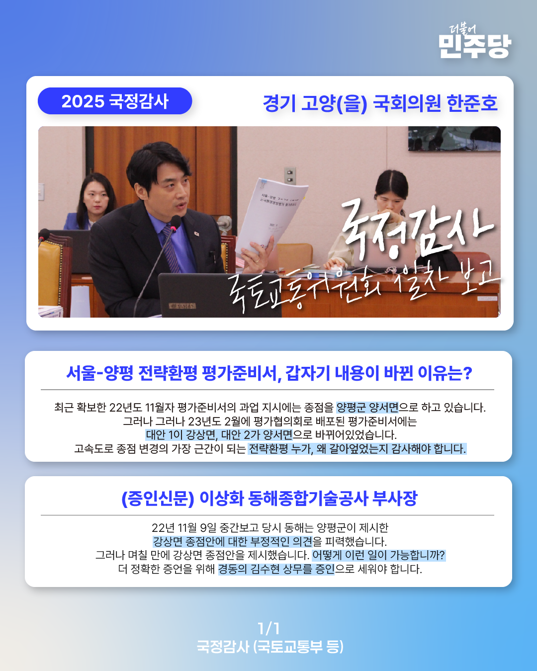 [국회의원 한준호 2025 국정감사 웹자보] 국정감사 1일차 보고