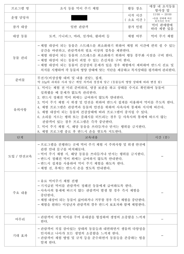 붙임 3. 인천 A 동물원의 초식·육식 동물의 먹이주기 체험 프로그램 운영 계획서