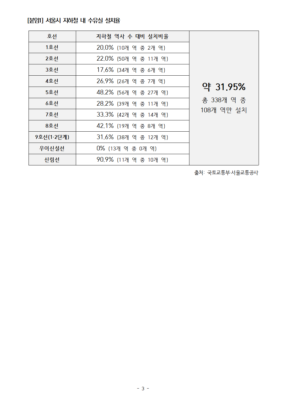 250923_서울지하철_수유실_설치율_31_2%_주요_거점역_대부분_사각지대_손명수의원.hwp