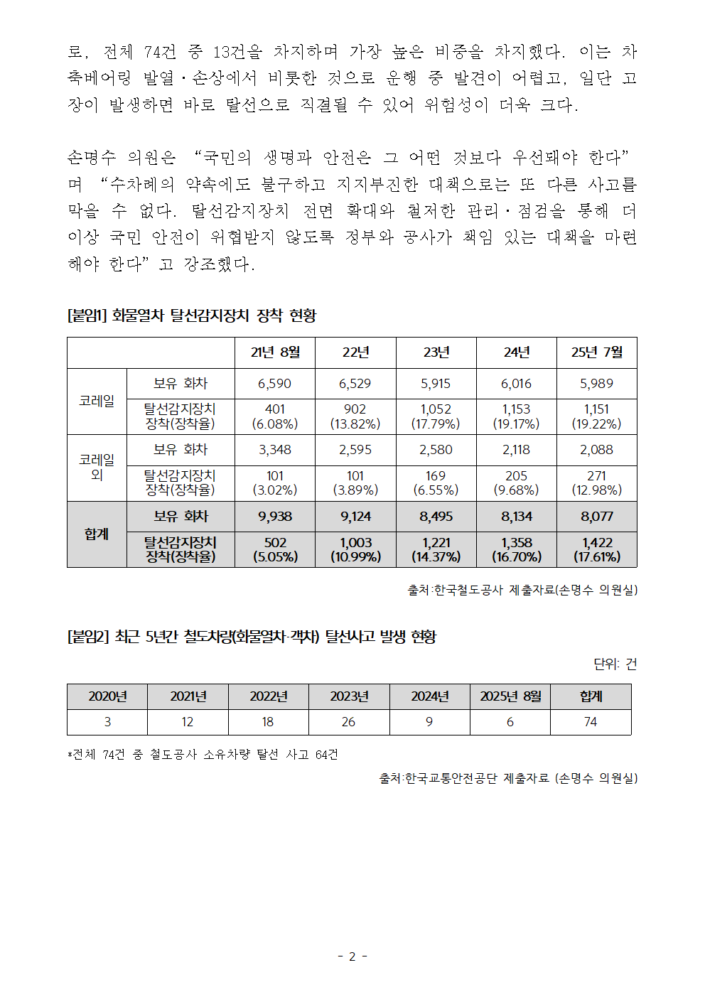 250926_손명수의원_화물열차_탈선감지장치__약속만_있고_실적은_제자리_최종.hwp