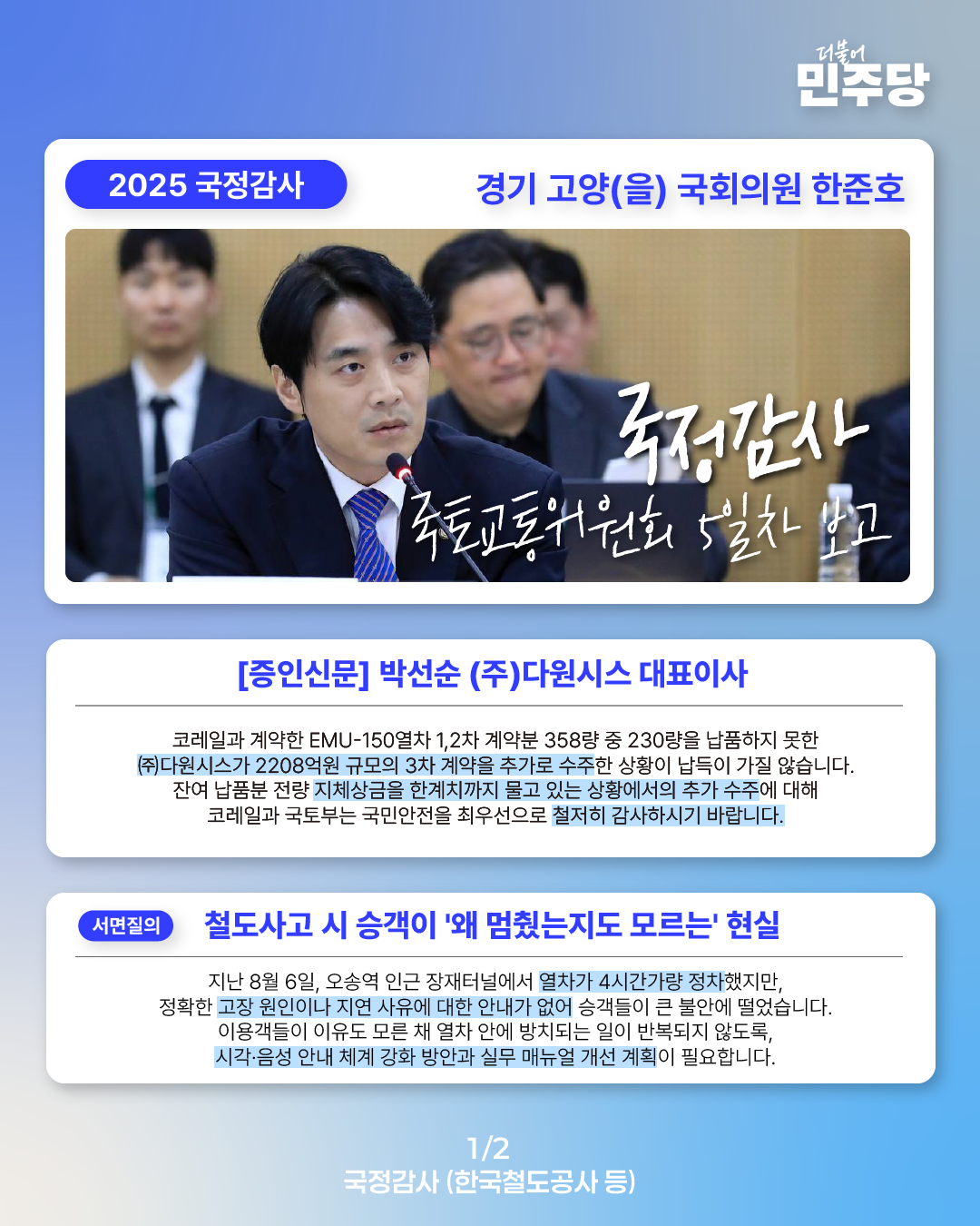 [국회의원 한준호 2025 국정감사 웹자보] 국정감사 5일차 보고