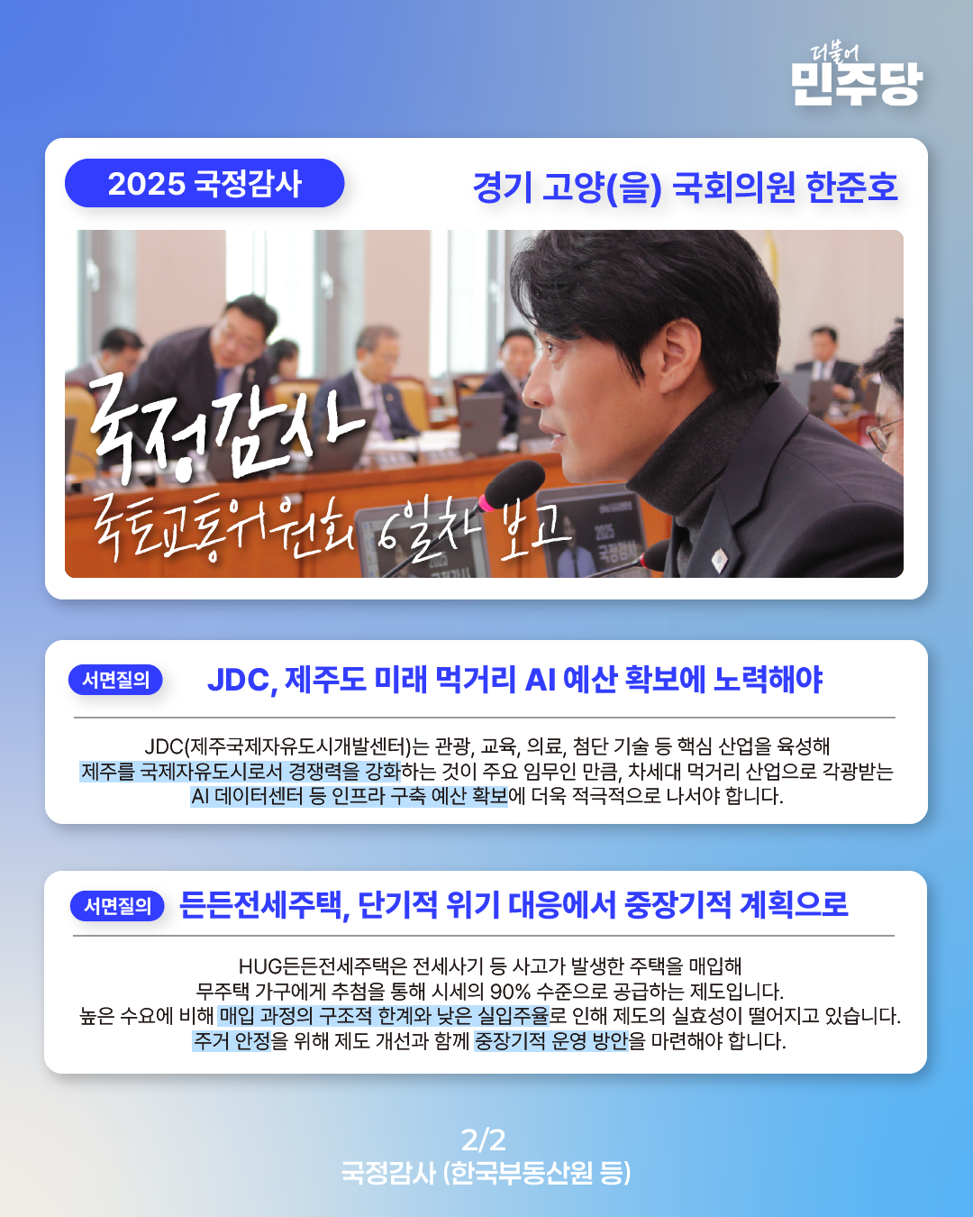 [국회의원 한준호 2025 국정감사 웹자보] 국정감사 6일차 보고