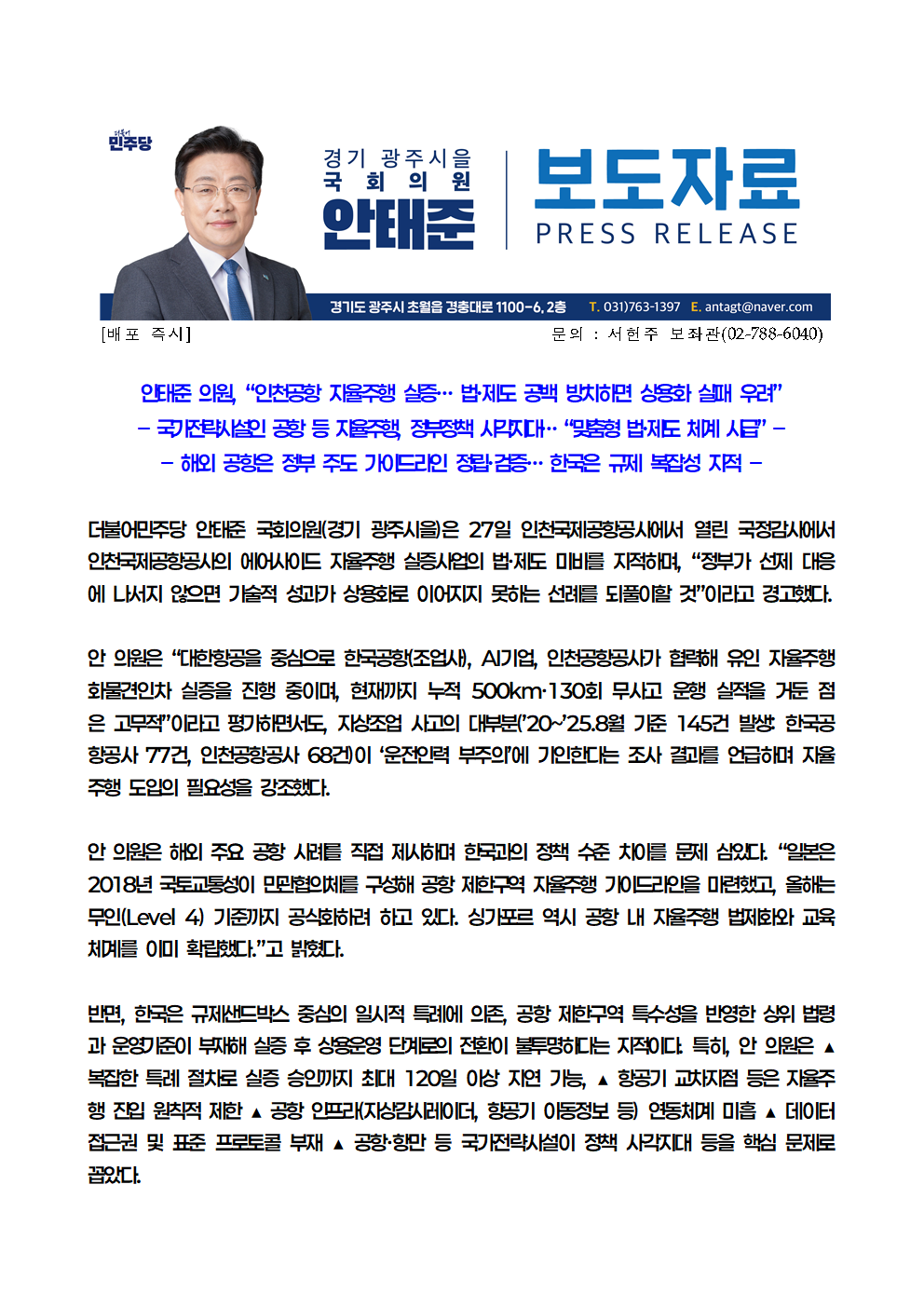 251027_보도자료_안태준_의원실_안태준 의원 “인천공항 자율주행 실증… 법·제도 공백 방치하면 상용화 실패 우려”.hwp