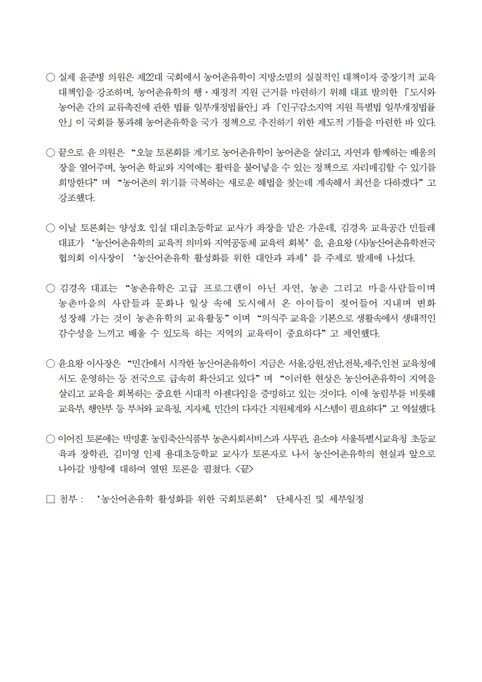250908 [윤준병 의원 보도자료] 윤준병 의원 ‘농산어촌유학 활성화를 위한 국회토론회’ 개최!.hwp