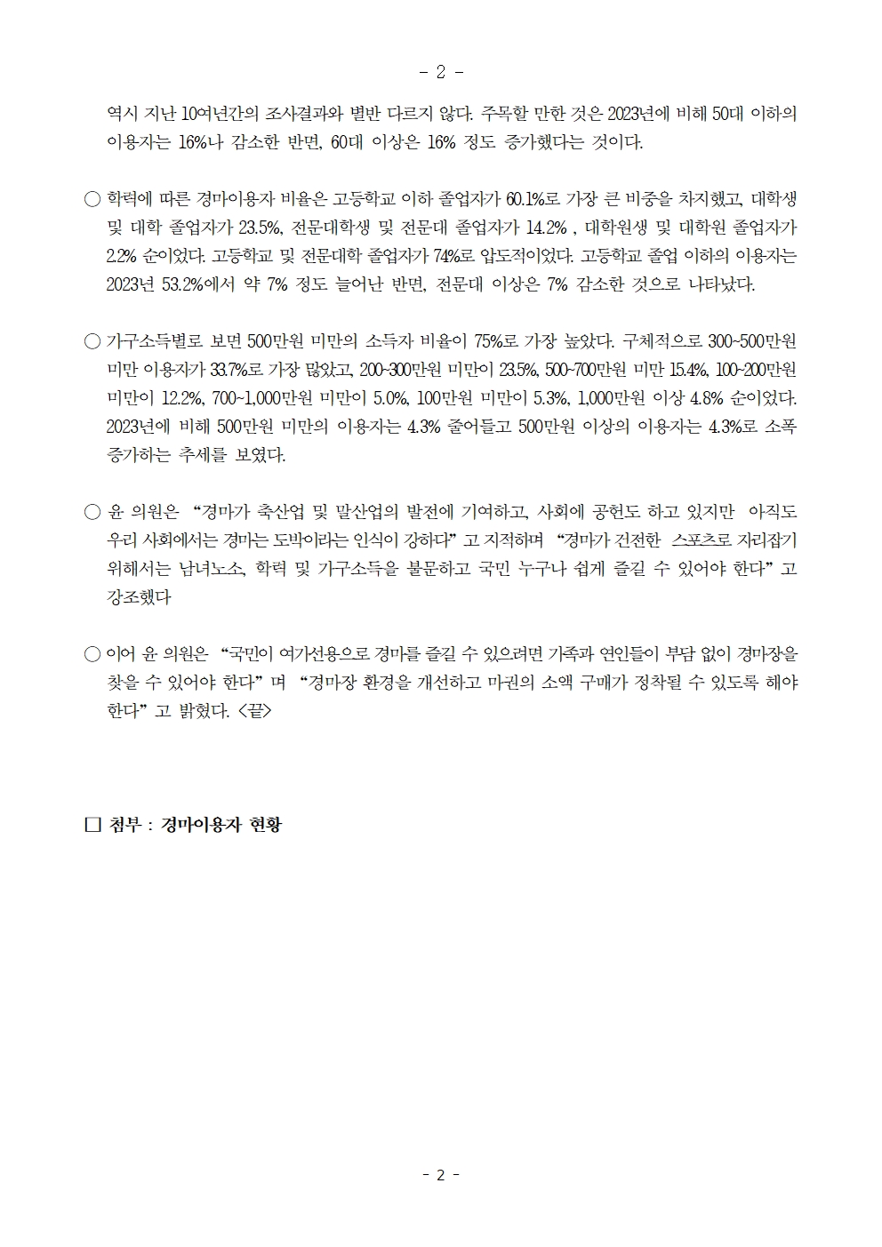 251008 [윤준병 의원 국정감사 보도자료] 경마는 여전히 도박이 주류! .hwp
