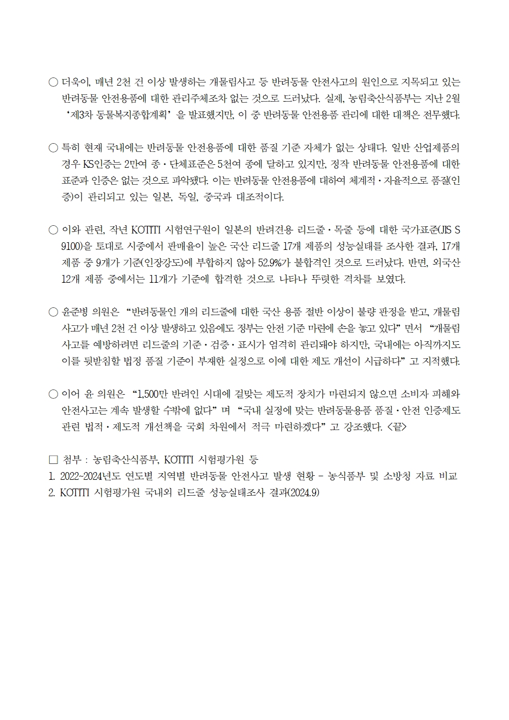 251014 [윤준병 의원 국정감사 보도자료] 반려동물 안전용품 관리주체·품질인증 없는 대한민국 안전 불모지대.hwp