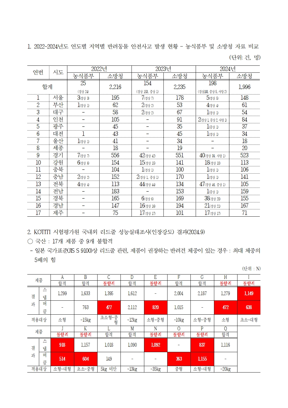 [윤준병 의원 국정감사 보도자료] 반려동물 안전용품 관리주체·품질인증 없는 대한민국, 안전 불모지대