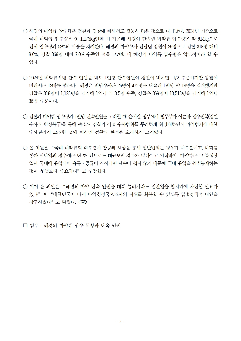 251016 [윤준병 의원 국정감사 보도자료] 5년여간 해경 압수 마약 2.4톤 전 국민 투약하고 남을 양.hwp