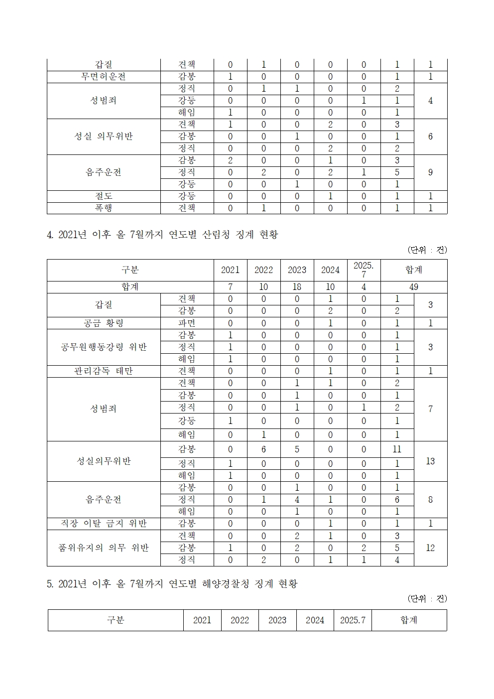[윤준병 의원 국정감사 보도자료] 국회 농해수위 소관 부처 임직원 징계 775건, 공직기강 해이 심각