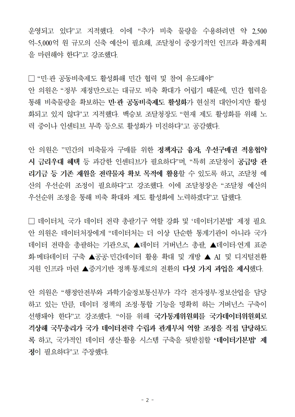 [국회의원 안도걸 보도자료] AI 3대 강국 도약을 위한 전략물품 비축확대 필요