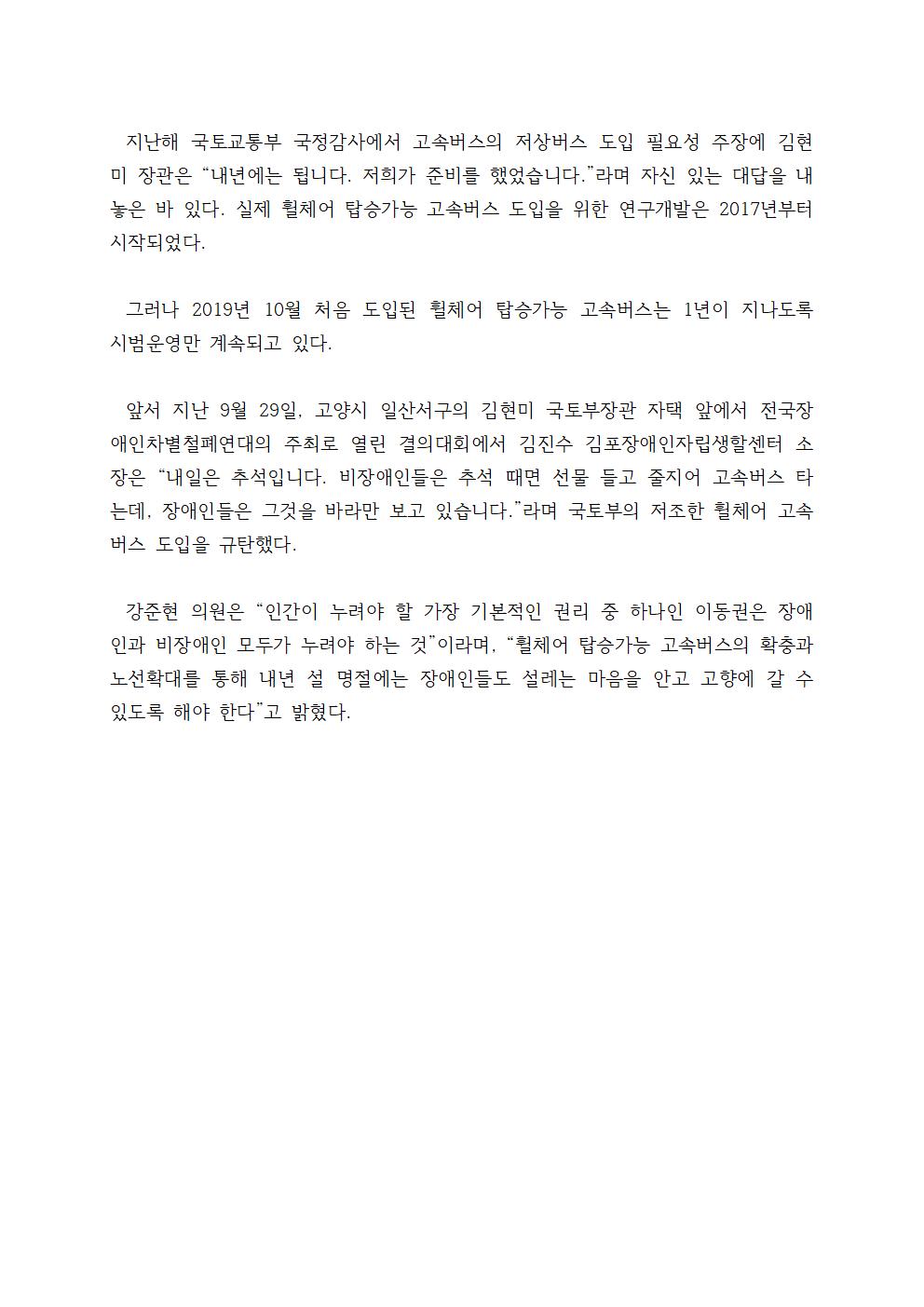[강준현 국회의원] 코로나는 둘째 치고, 고속버스 타고 고향 못가는 지체장애인