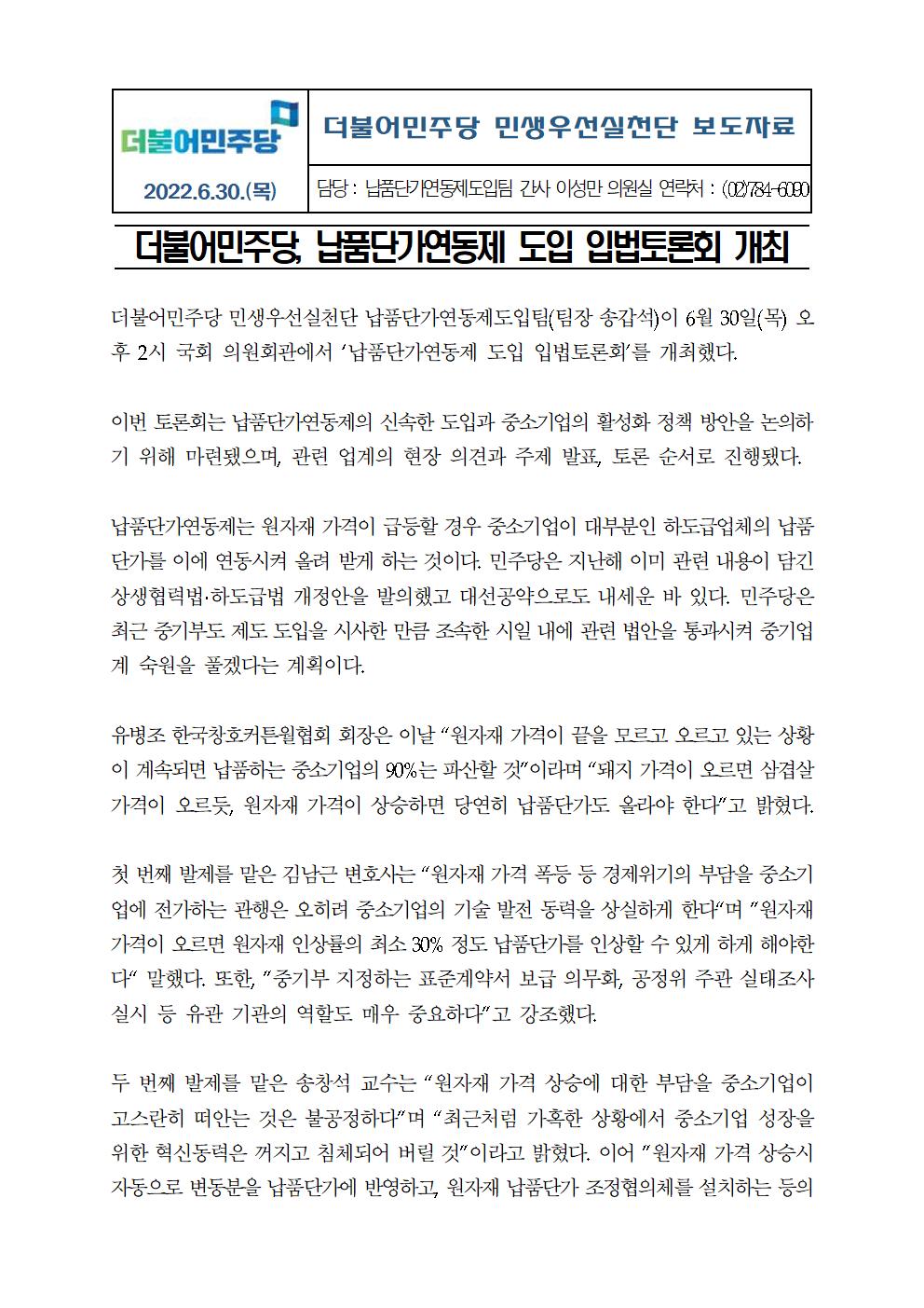보도자료민주당,납품단가연동제_도입_입법_토론회_개최_220630.pdf