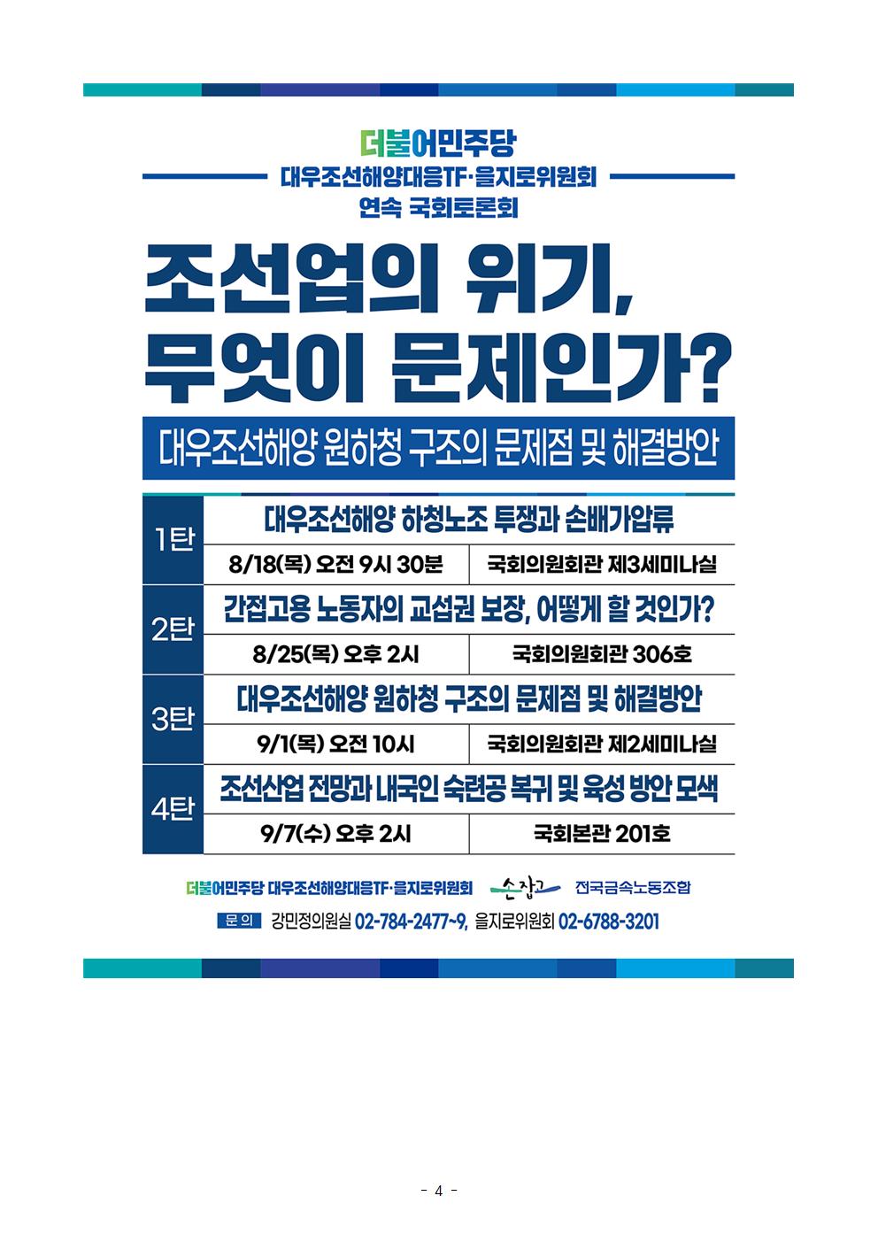 [보도자료] 더불어민주당 을지로위원회, "조선업의 위기, 무엇이 문제인가" 제3차 국회 연속토론회 개최
