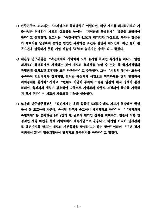 [정책브리핑 및 보도자료] 더불어민주당 민주연구원, 지역화폐 특별회계 신설 제안