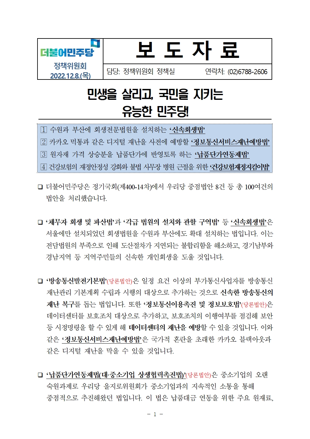 [보도자료] 더불어민주당 정책위원회 정기국회 12월 입법성과