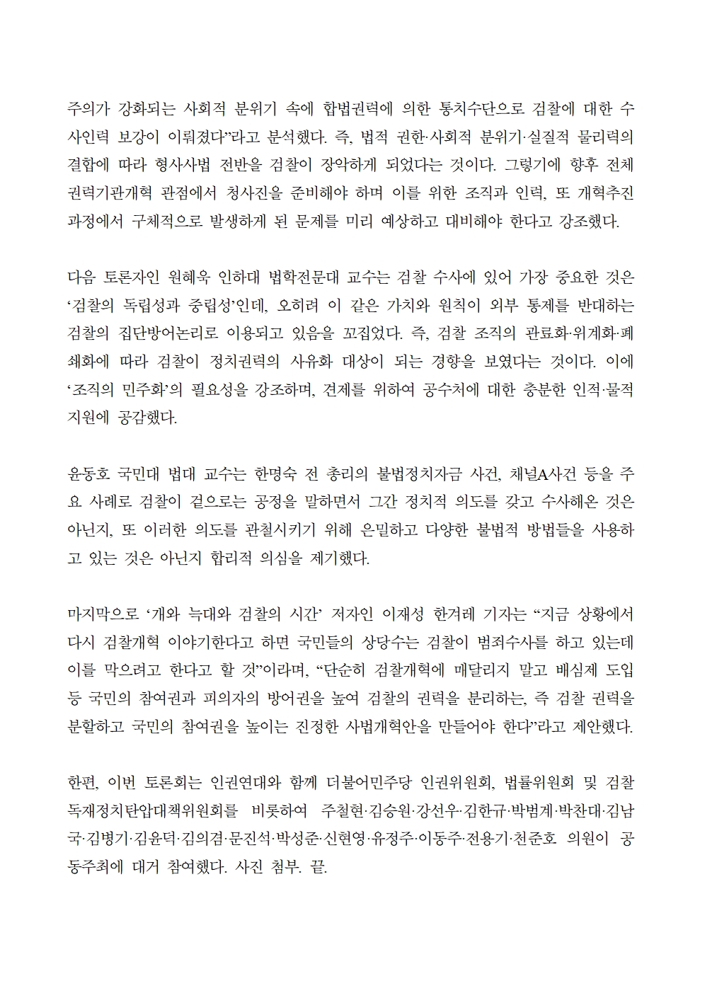 [보도자료] 더불어민주당 인권위원회, 검찰 인권침해 수사의 문제점과 제도적 대책 마련을 위한 토론회 성황리 개최 완료