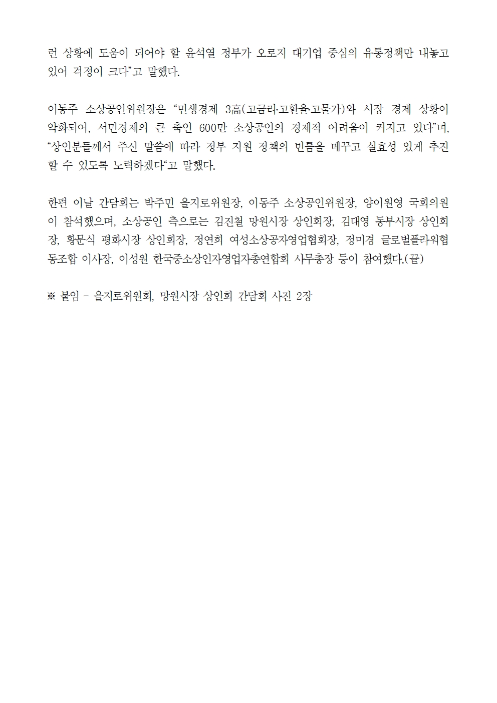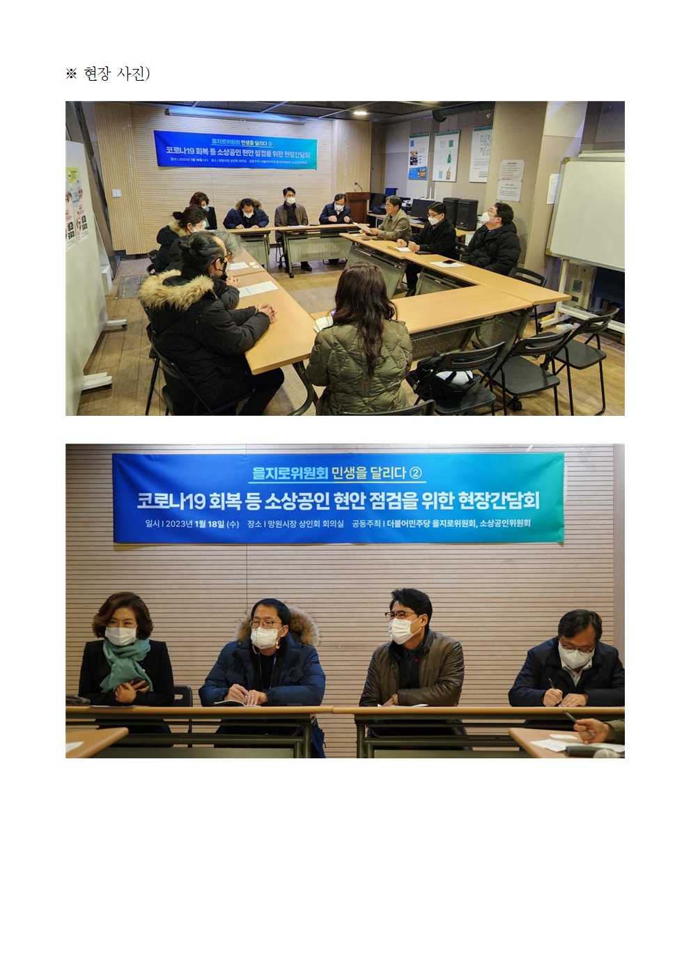 [보도자료] 더불어민주당 을지로위원회, 소상공인 현안 점검을 위한 망원시장 현장 간담회 진행