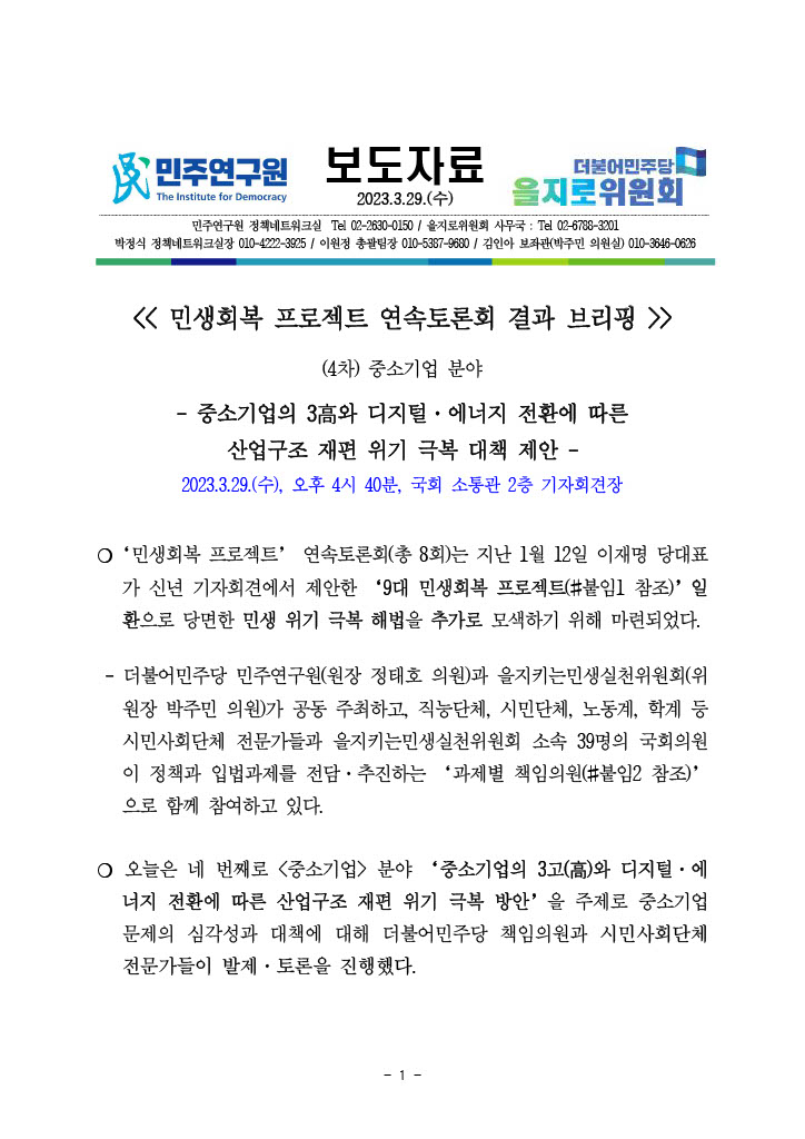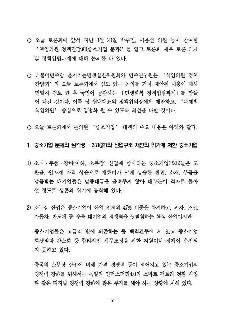 230329_보도자료_중소기업_토론회_결과_언론_브리핑_최종_민주연구원★.pdf