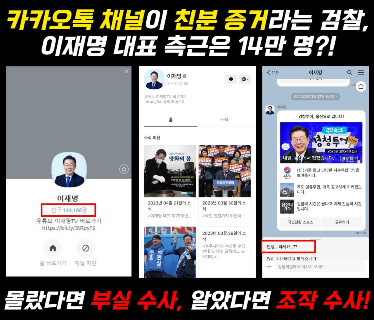 검찰이 증거로 제시한 카카오톡 대화방도 마찬가지입니다. 개인적인 카카오톡 대화방이 아니라, 현재 14만 4166명이 가입되어 있는 공식 홍보 채널입니다.