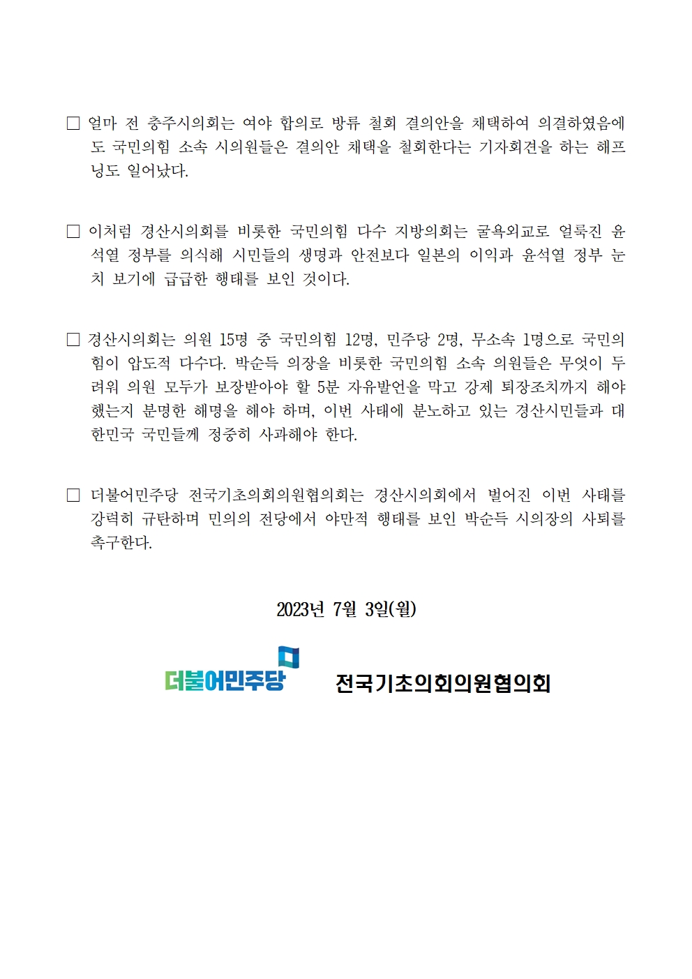 230705_기초의회의원협의회_경북_경산시의회_의장의_반민주적_운영_규탄_기자회견_fn.hwp