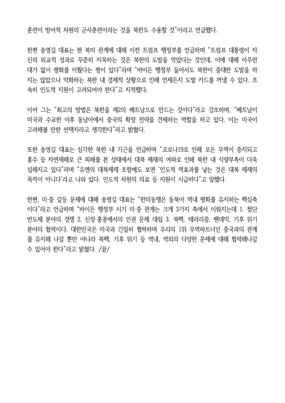 [보도자료] 송영길 당대표, 아스펜 포럼 대담 및 질의응답